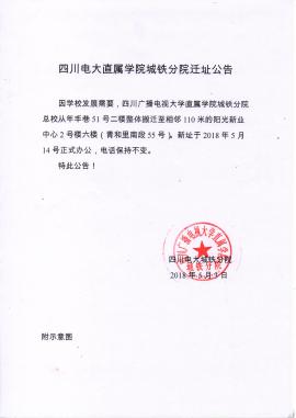 四川电大直属学院城铁分院迁址公告