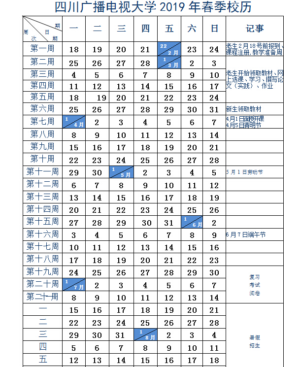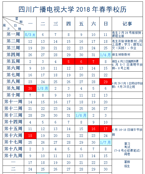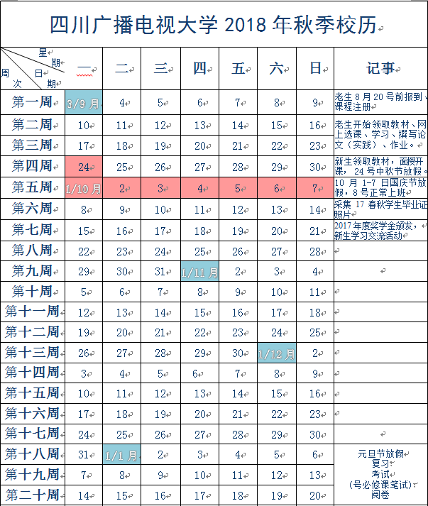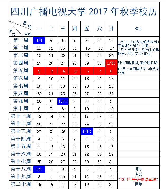 四川广播电视大学2017年秋季校历